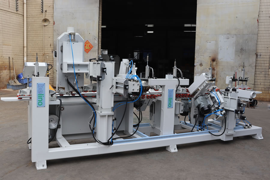 適用于異形或平面窄料的三面砂光處理,主要用于實木、PDF、鋁型材等材料的木線條、門框、門套板、樓梯、百葉窗等需要砂光處理的產品,可對白坯或底漆進行打磨砂光。